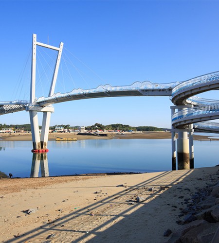 백사장 면적은 96ha, 길이는 3.2km, 폭은 300m, 경사는 3도, 안정수면거리는 300m로 안면도에서 제일 큰 해수욕장입니다. 넓은 백사장과 완만한 수심, 맑고 깨끗한 바닷물, 알맞은 수온과 울창한 소나무숲으로 이루어져 해마다 100만명이 넘는 피서객이 찾아오고 있습니다. 꽃지해수욕장은 넓은 백사장과 할미바위, 할아비바위가 어우러져 그림 같은 풍광을 보여주며 할미바위와 할아비바위 사이로 떨어지는 낙조는 유명하며 연중 사진작가들이 찾는 곳 입니다.